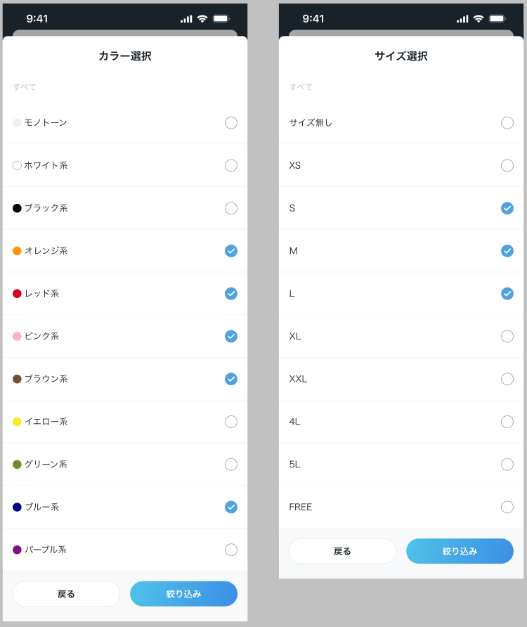 検索時にカラー・サイズの複数選択ができるようになりました