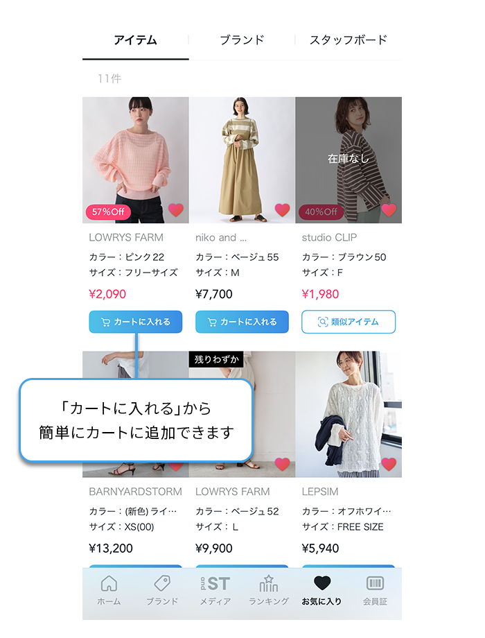 【アプリ】お気に入り商品ページから直接カートに追加できるようになりました