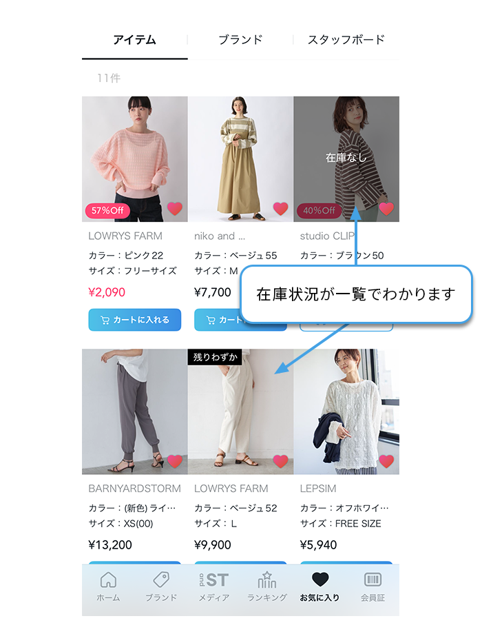 【アプリ】お気に入り商品ページで在庫有無が簡単に確認できるようになりました
