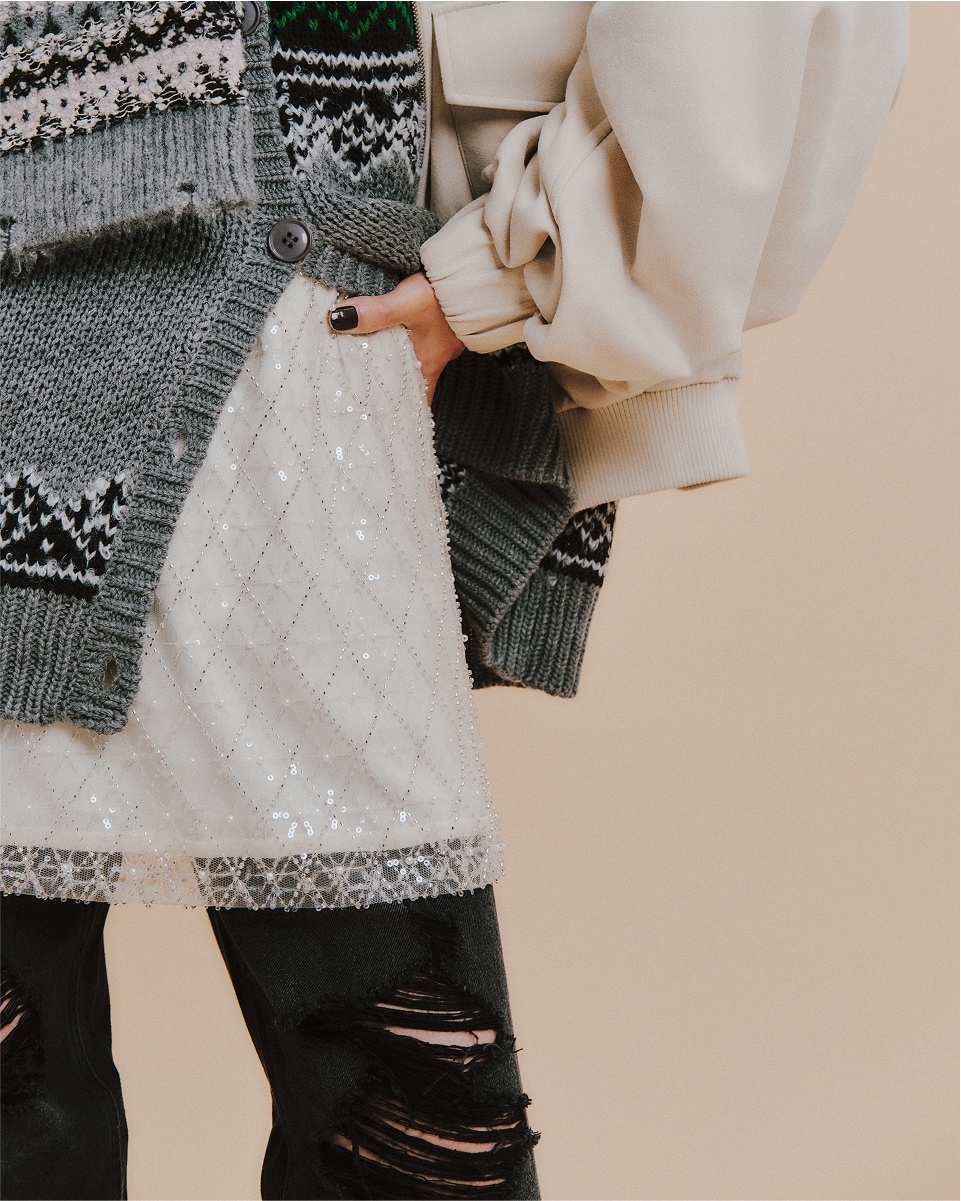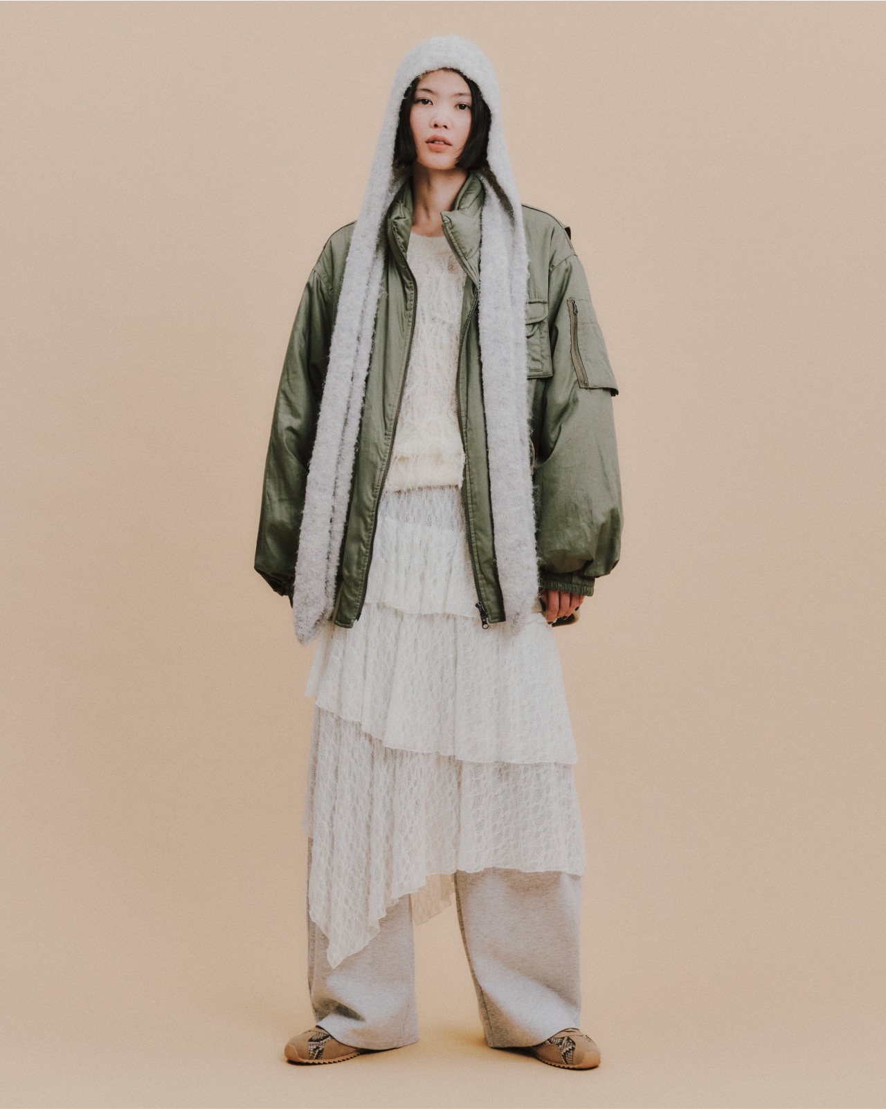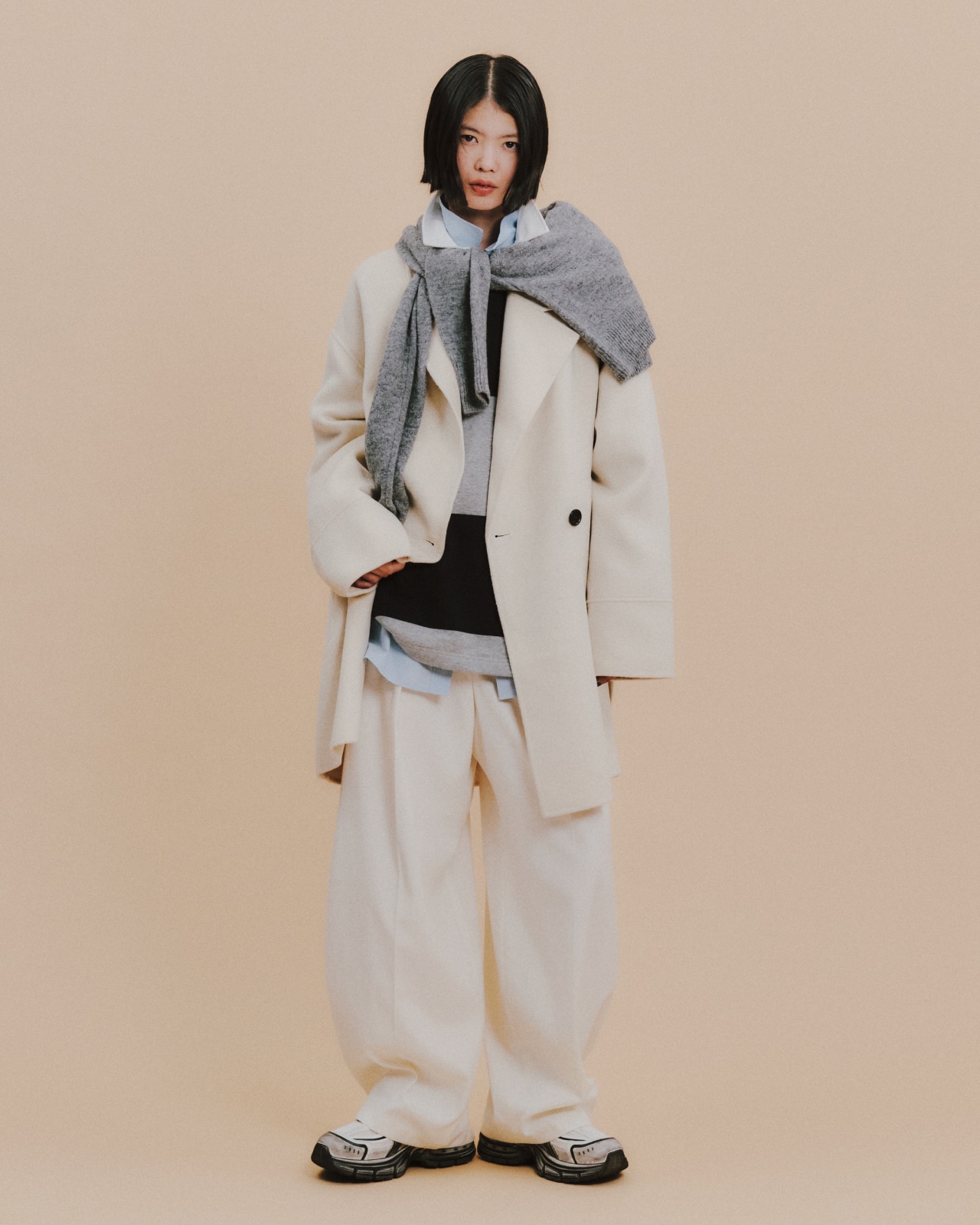 ゆったりとしたシルエットに、チャーミングな抜け感をプラス。気取らないアイテムを重ねたレイヤードスタイルは、ワントーンでまとめても、アクセントカラーで遊んでもOK。ラフさの中に、今年らしいムードを効かせて。