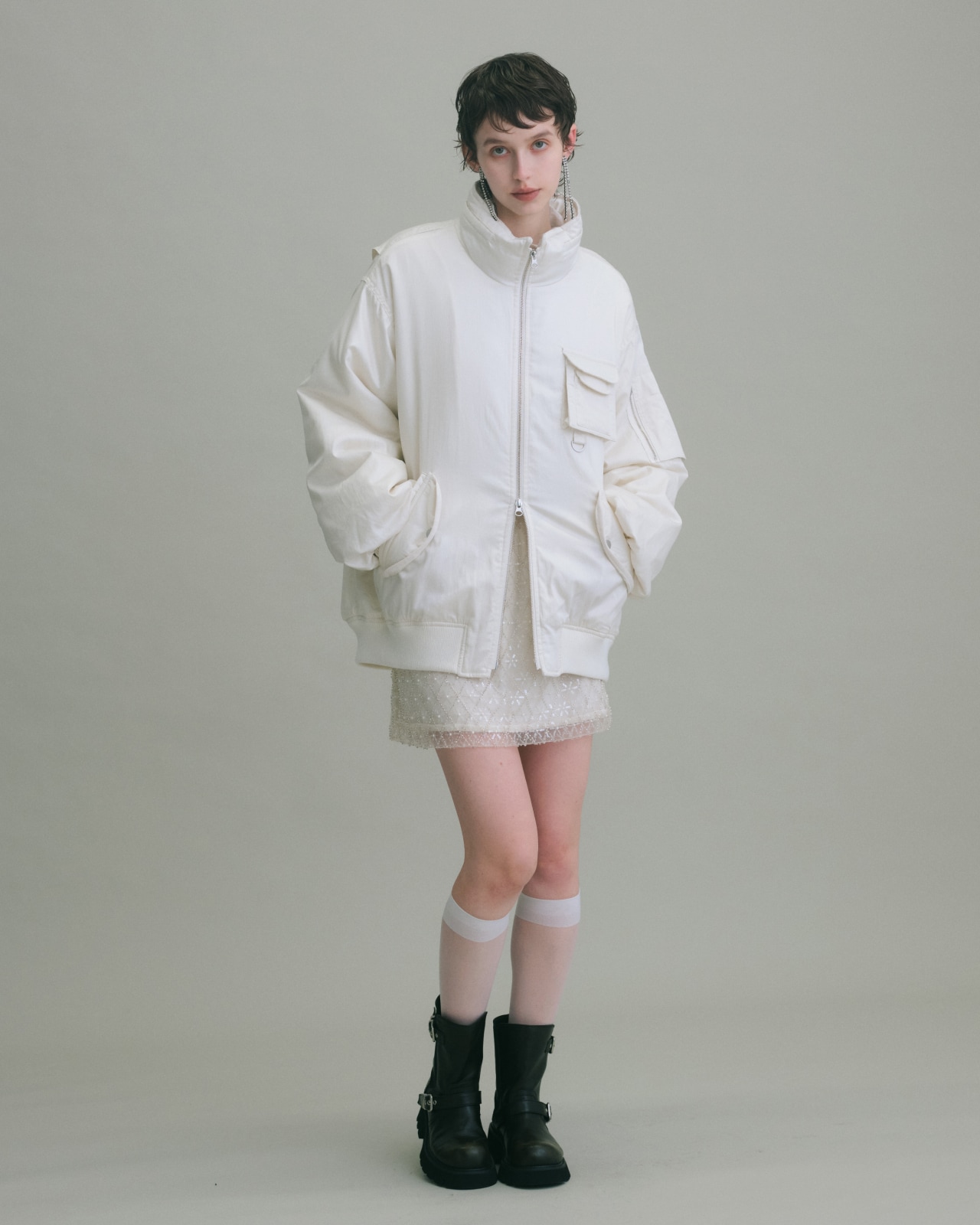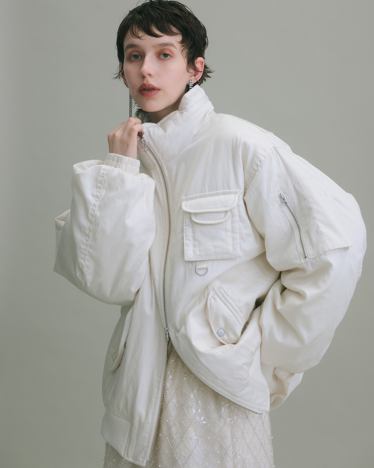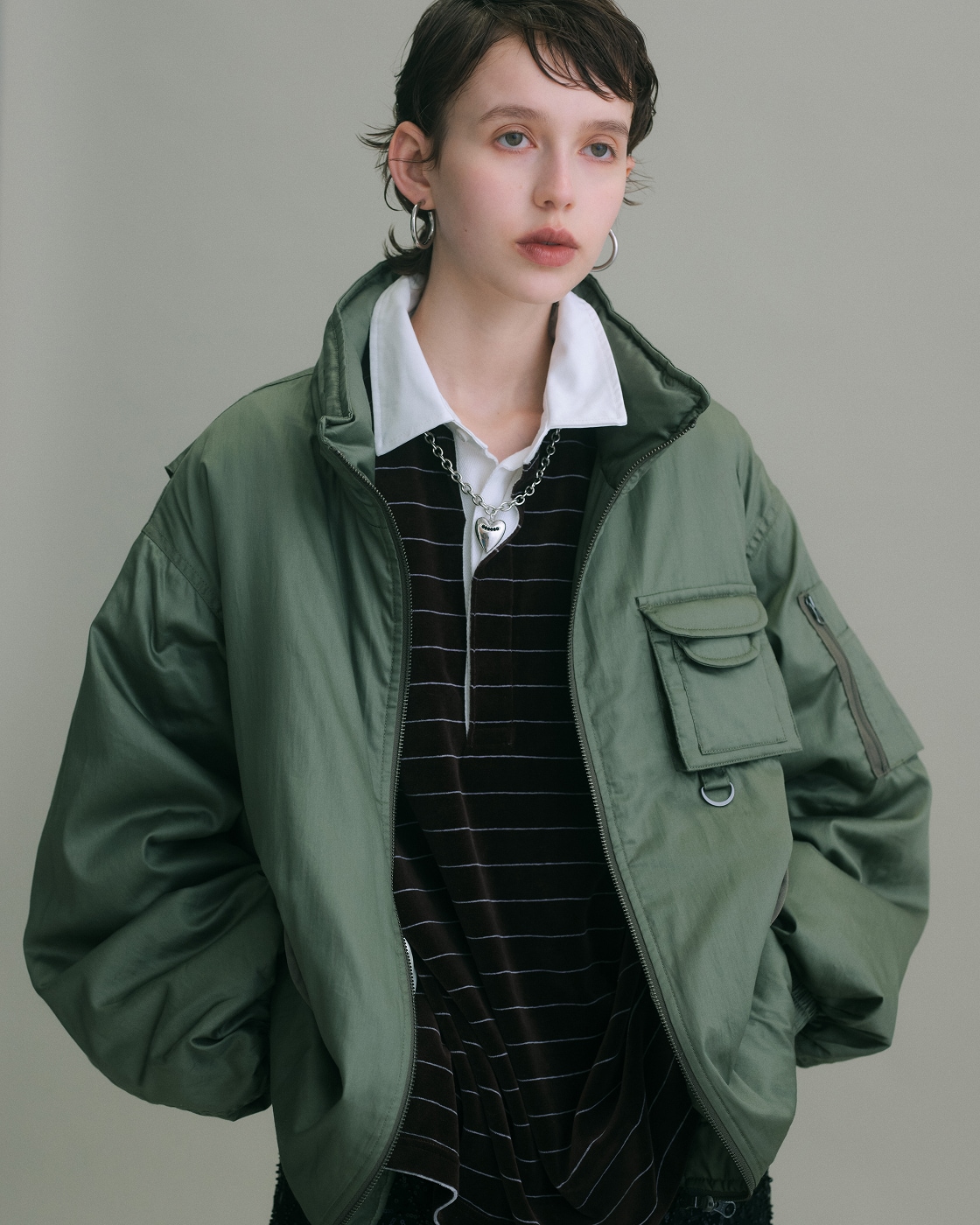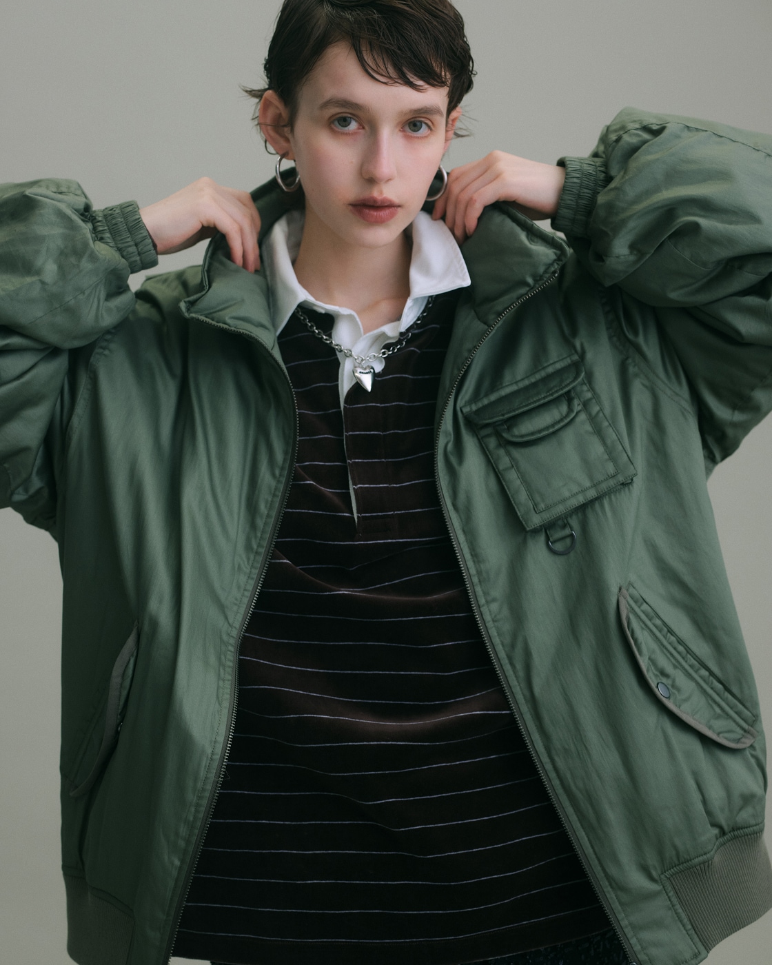 上品な素材感のミリタリーブルゾンは、