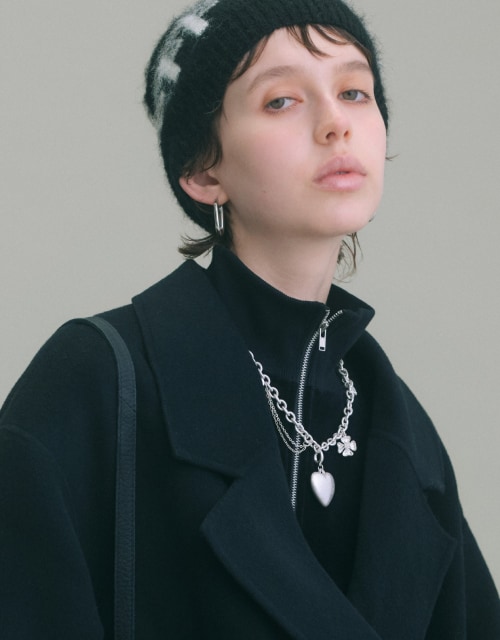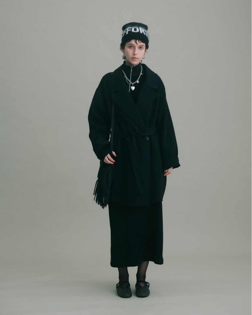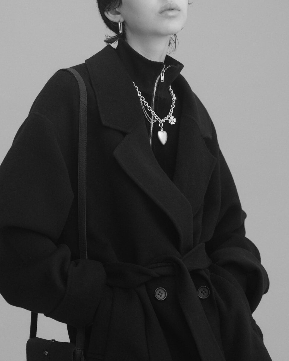 シンプルなブラックコートも、