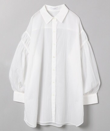 シャツはバルーンスリーブにすることで女性らしさも兼ね備えた秋の一押しスタイル。
