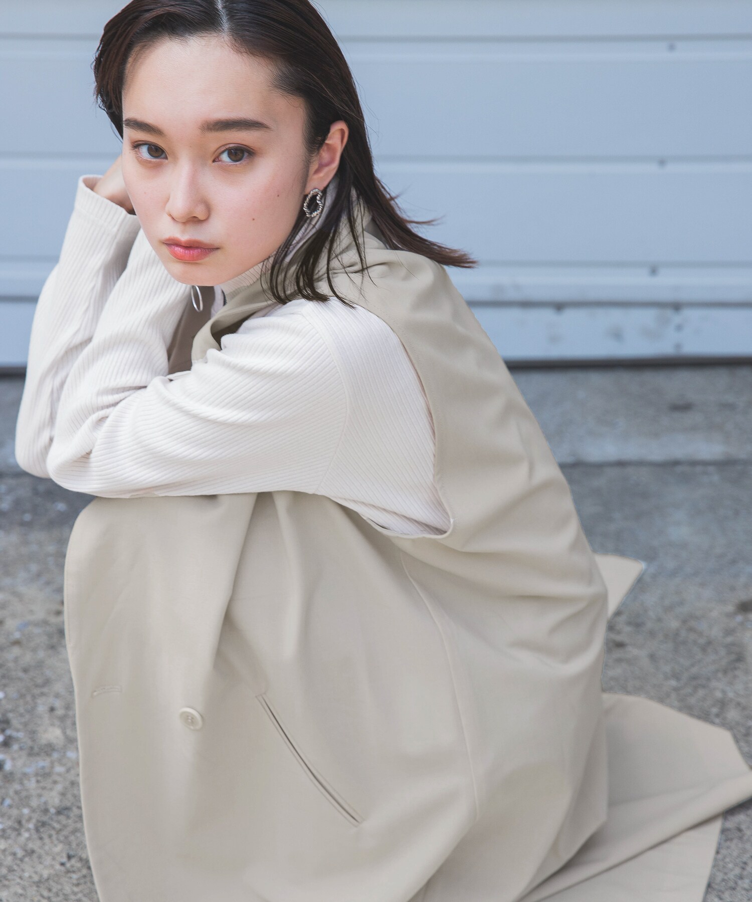 コンパクトトップスを合わせて、よりシャープに着こなしました。