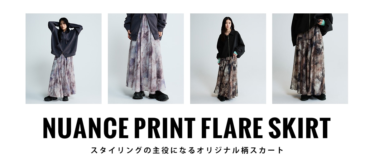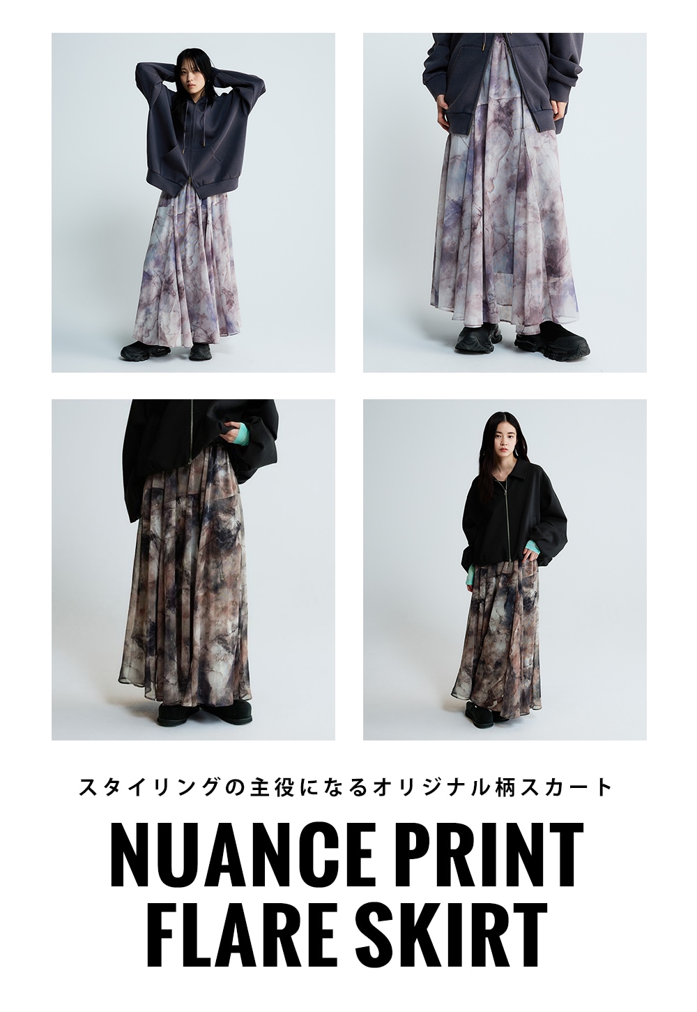 【選べる着丈・WEB限定】ニュアンスプリントフレアスカート