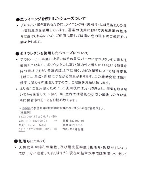 | 素材 | アッパー:天然皮革 人工皮革 アウトソール::ゴム底 |