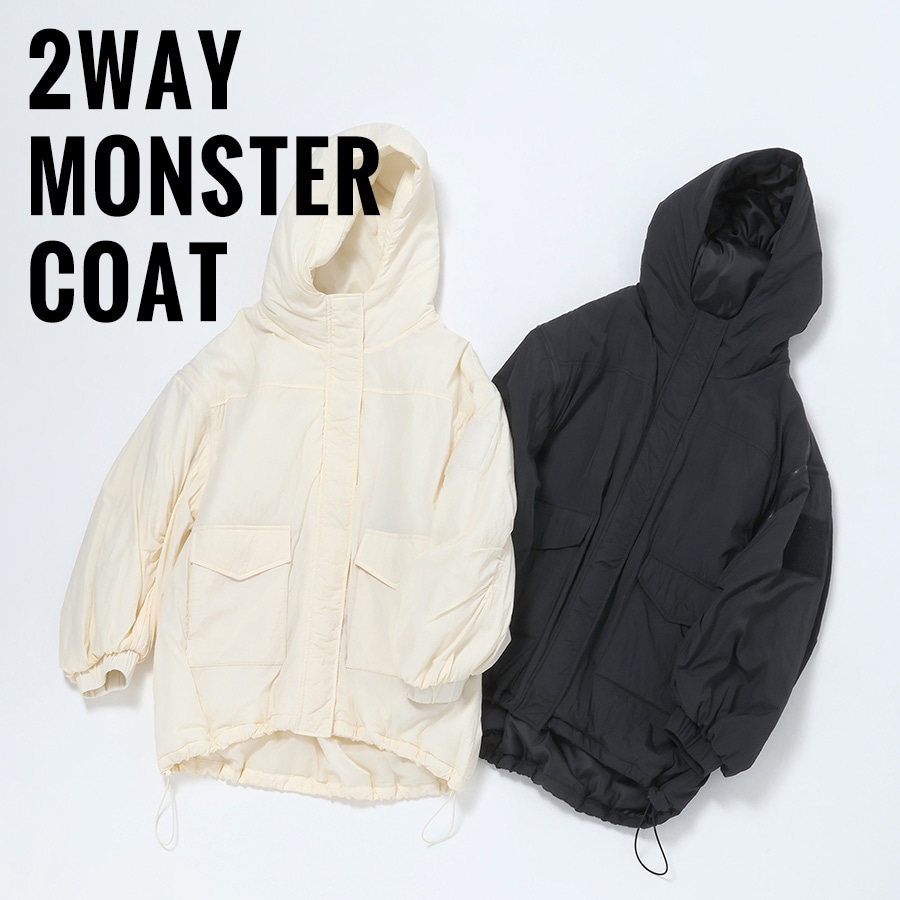 【中綿入りで冬の防寒も◎】ソデ2WAYモンスターパーカーコート
