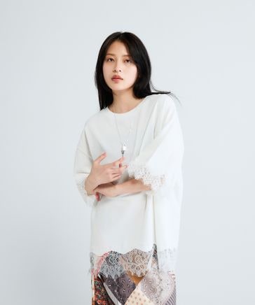 レースパターンドロストプルオーバー