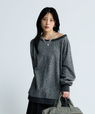 【選べる着丈】オフショルラメミニウラケプルオーバー