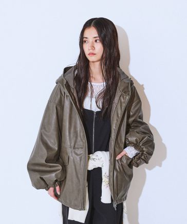レザーパファーフードブルゾン