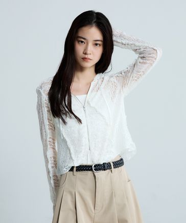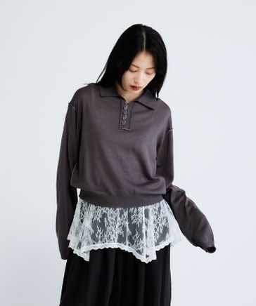 レースパターンドロストプルオーバー