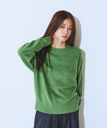 アンゴラセミシャギークルーネックプルオーバー