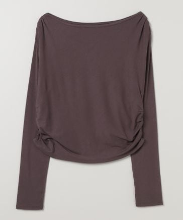 アシメギャザーボートネックLS