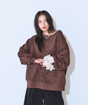 スエードライクオフショルプルオーバー