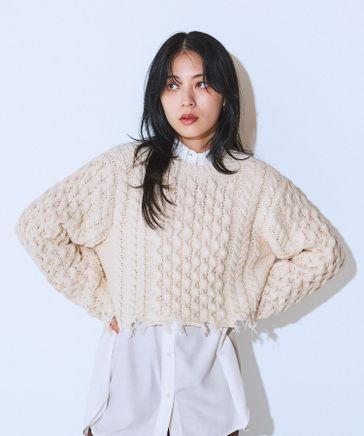 12G Wジャガードボリュームスリーブプルオーバー【一部カラー追加予約】