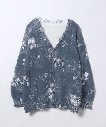 BlurフラワープリントVカーディガン