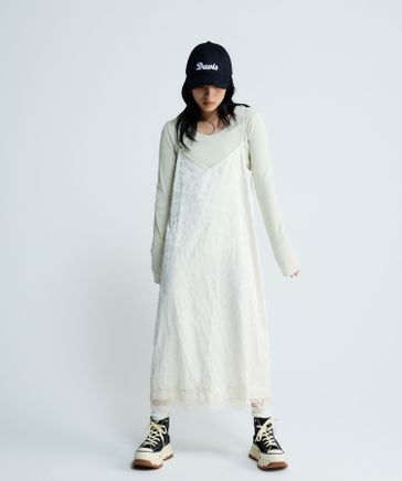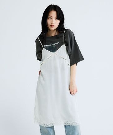 レーストリムサテンキャミワンピース