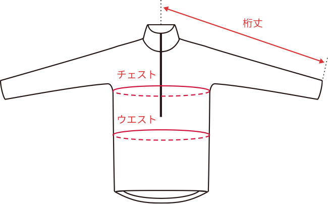 表記にある身幅とは「脇下2cm下の幅」で測ります(身幅も同様、1~2cmの誤差は予めご了承ください)。