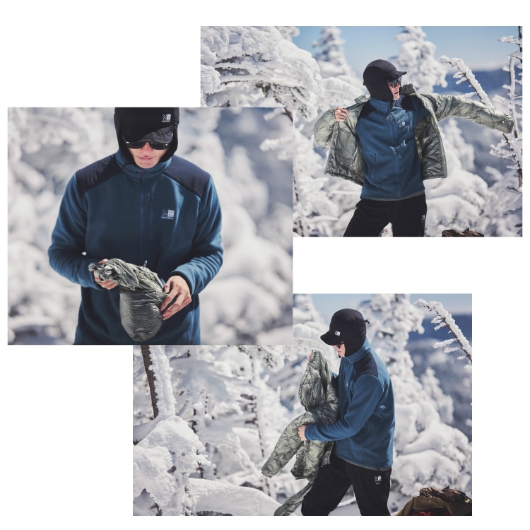 マイクロ糸を使用した、ストレッチ性のある滑らかな表面感が特徴のフリース。原料には環境にやさしいリサイクルポリエステルを使用。袖は冷気の侵入を防ぐバインダー仕様。 ショルダー部分は強度アップのため布帛生地を当てた二重構造に。ハーネスとの干渉を避けた位置にウエストポケットを配置し、ベンチレーション機能も兼ねたチェストポケットも搭載。