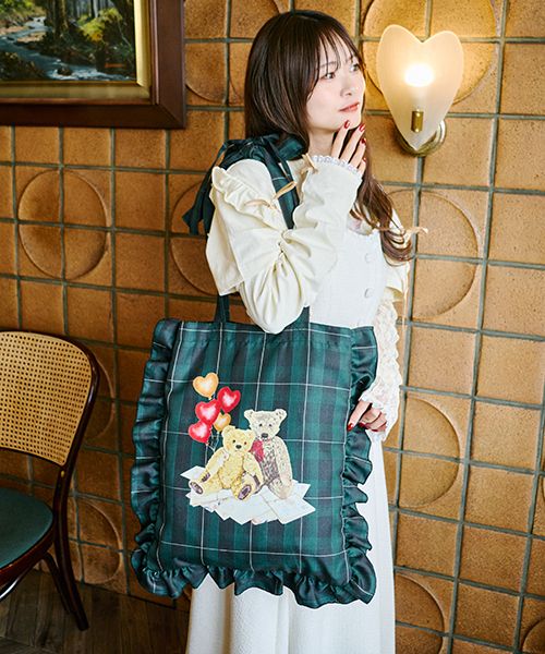 【クティールとレトロ】TeddyBear/テディベアコラボ リボンチェックフリルトート