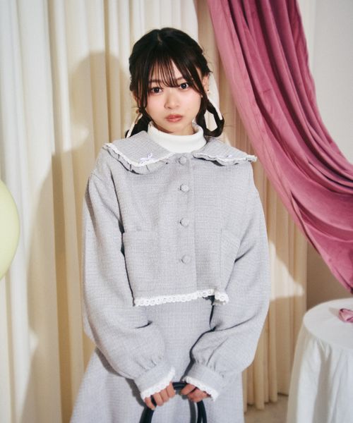 【クティールとレトロ】セットアップ着用可 ツイードリボンポケットジャケット