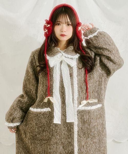 【クティールとレトロ】コットンレースシャギーロングコート