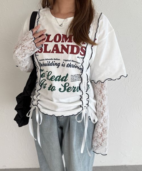【アームウォーマー付き】ドロストレース切り替えTシャツ