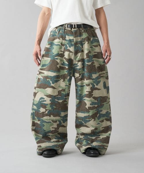 【kutirmen】アソート柄リップストップデザイン バギーダックパンツ