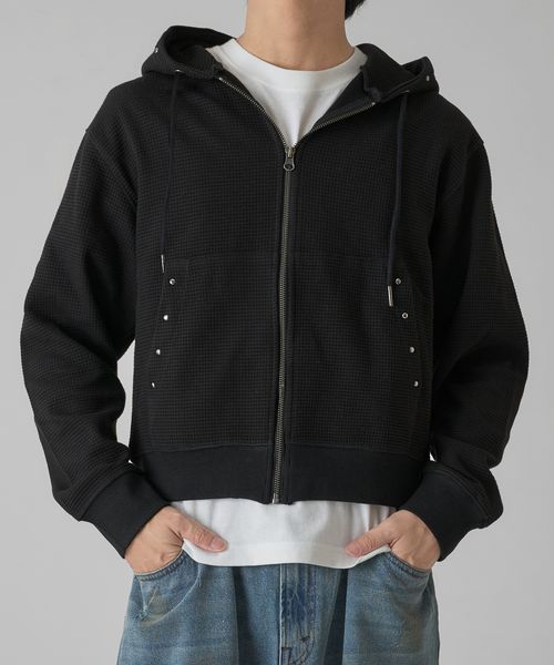 【kutirmen】スタッズデザインサーマルジップフーディー