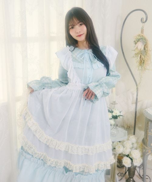 【追加予約】【クティールとレトロ】2wayレースフリルエプロンワンピース