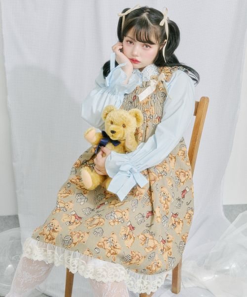 【クティールとレトロ】ゴブランリボンミニジャンパースカート/ワンピース