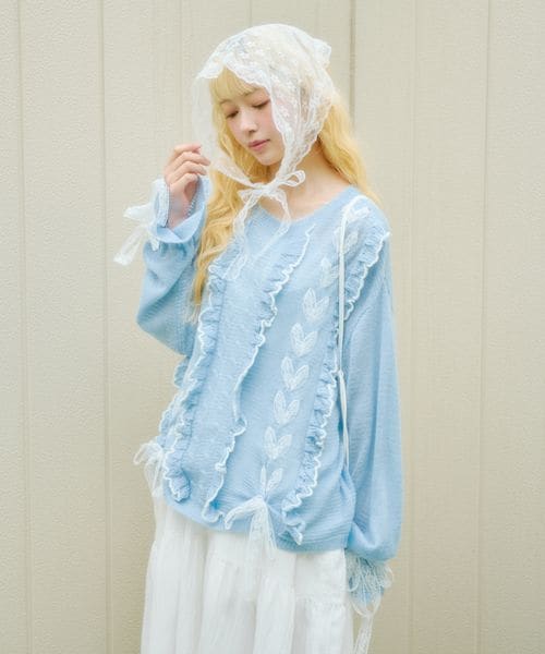ハートレース透かし編みドロストニット