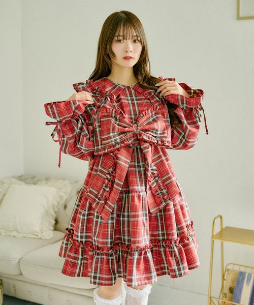 【クティールとレトロ】セット着用可2wayチェックリボンビスチェ