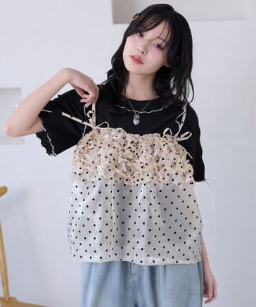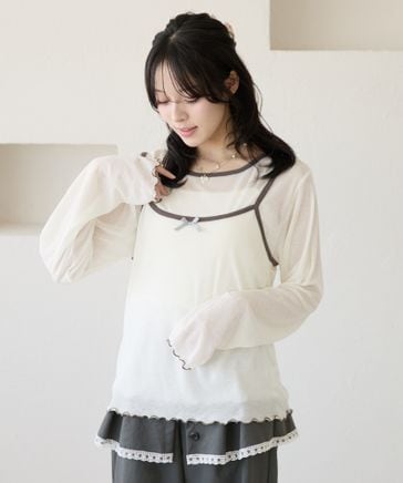 配色リボンキャミセットシアーTシャツ