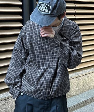 kutirmen/クロップドスタッズチェックシャツジャケット