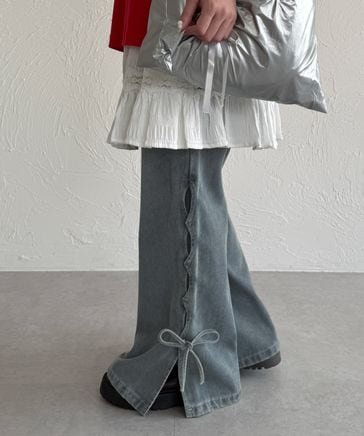 オーバーダイリボンフレアデニムパンツ