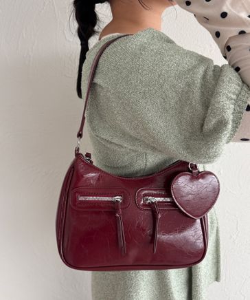 【一部予約】kutirlune/ハートチャーム付き WAYダブルジップハーフムーンショルダーバッグ