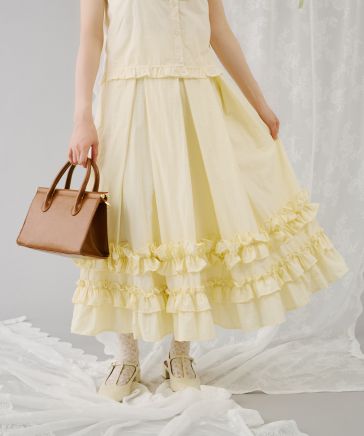 【クティールとレトロ】セットアップ着用可 ボリュームフリルタックスカート