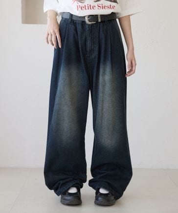 【XS~Lサイズあり】タックワイドデニムパンツ