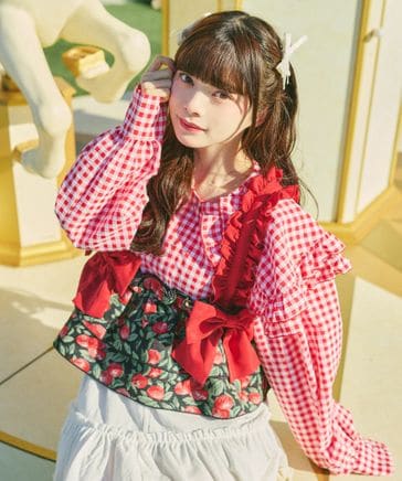 【予約】【クティールとレトロ】【セット着用可】2wayチェックリボンビスチェ