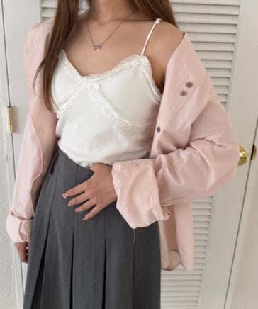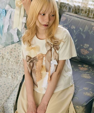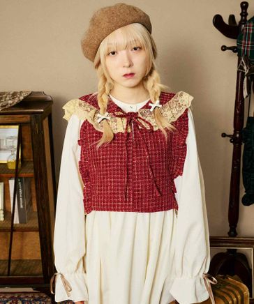 【クティールとレトロ】SET着用 チュールドッキングレースフリルブラウス