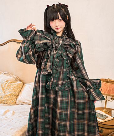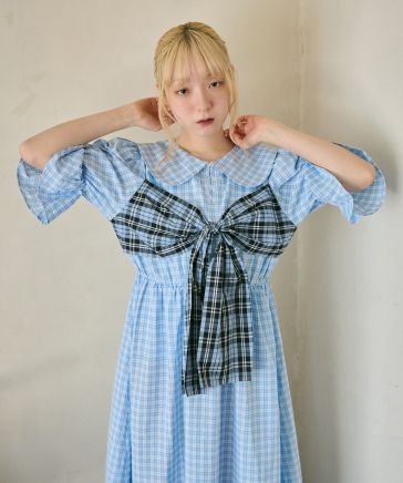 【クティールとレトロ】ドッキングチェックリボンティアードワンピース