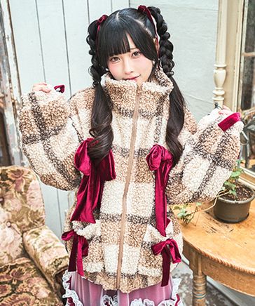 【クティールとレトロ】ベロアリボンアソートボアブルゾン
