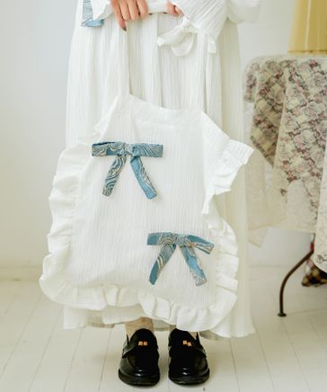 【クティールとレトロ】TeddyBear/テディベアコラボ リボンチェックフリルトート