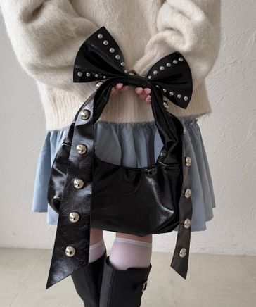 kutirlune/スタッズ×リボン ショルダーバッグ ハンドバッグ