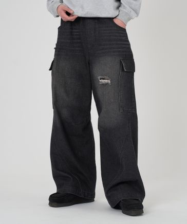 【kutirmen】/ヴィンテージライクダメージバギーデニムパンツ