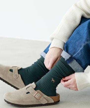 【Tabio MEN】WEB限定/メンズリブ鹿の子ベタクルーソックス/082140023