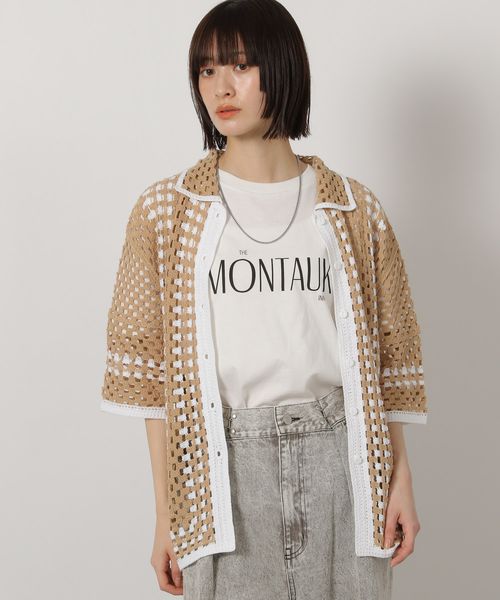 かぎ針風シャツカーディガン6分袖