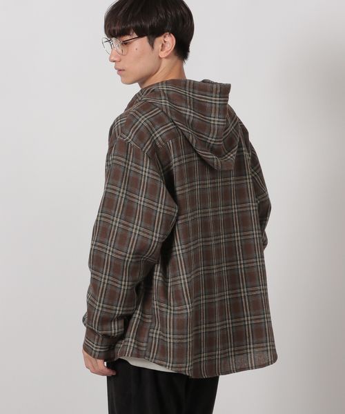 チェックフード長袖シャツ
