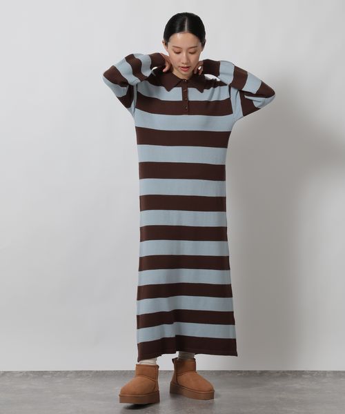 ポロニット長袖ワンピース